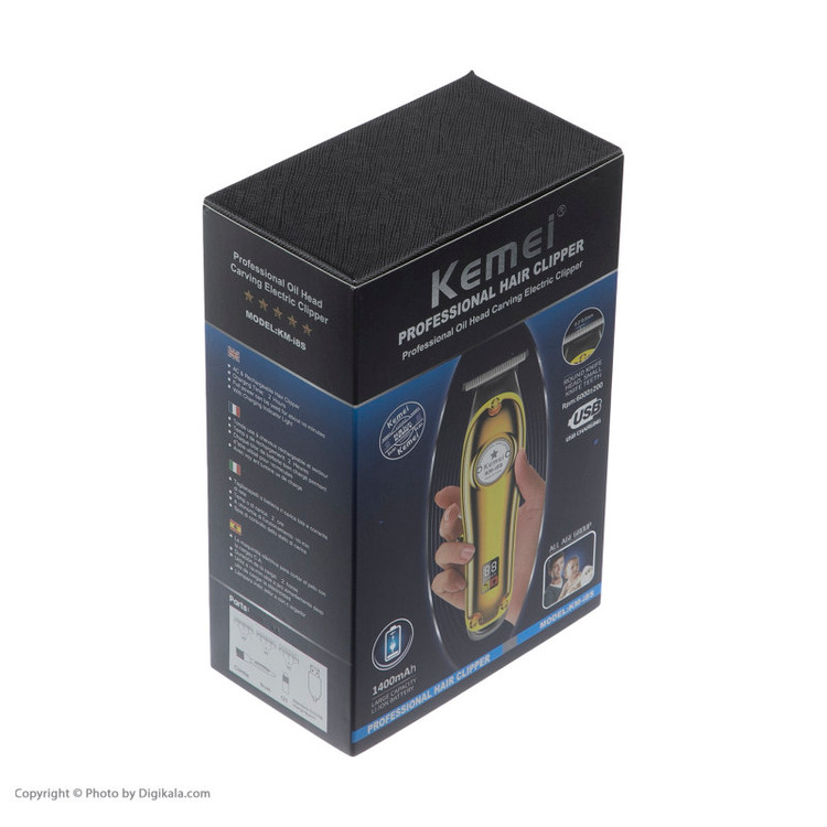 ماشین اصلاح موی سر و صورت و بدن کیمی مدل KM-i8S، یک ماشین اصلاح خوب یرای مصارف خانگی و سالن های آرایشی بوده که می تواند هم در منزل و هم در سالن آرایشگاه ها مورد استفاده قرار گیرد. ماشین اصلاح موی سر و صورت و بدن کیمی مدل KM-i8S دارای 4 شانه با اندازه های مختلف بوده تا بتواند اصلاحی کامل و بینقص را بر طبق خواسته شما انجام دهد. کیمی مدل KM-i8S را میتوان با اتصال مستقیم به برق استفاده کرد. با تنها دو ساعت شارژ کردن کیمی مدل KM-i8S، این دستگاه بهطورکامل شارژ شده و می تواند تا حدود 3 دقیقه شارژدهی داشته باشد. جهت نظافت و نگهداری دستگاه نیز روغن مخصوص تیغه ها ارائه شده تا با استفاده از آن بتوان علاوه بر داشتن ماشین اصلاحی دقیق و تیغه هایی تیز ، طول عمر دستگاه را نیز افزایش داد. جنس تیغه ها از فلز با دوام استیل ضدزنگ است. از این دستگاه هم آقایان و هم بانوان میتوانند استفاده کنند. باید به این مورد اشاره داشته باشیم که این دستگاه دارای استفاده برای تمامی سنین از کودکان تا بزرگسالان است. بدنه این دستگاه از فلز بوده و این مورد باعث طولعمر مفید بالای این دستگاه است.