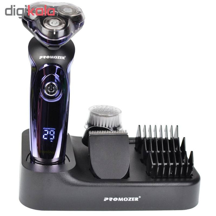 ماشین اصلاح چند کاره پروموزر مدل MZ2026 محصولی کاملاً حرفه ای که به تنهایی قادر به رفع تمام نیازهای اصلاح سر و صورت و گوش و بینی و پاکسازی صورت است. دستگاه دارای پنج سری متفاوت است. ویژگی بارزی که در این دستگاه به چشم میخورد قابل استفاده بودن دستگاه بصورت تر و خشک و زیر دوش است. سری اصلاح سر و و صورت این دستگاه موهای سر و صورت و بدن را در سایز 1 میلی متر کوتاه می کند و برای اصلاح موها در اندازه بلند تر میتوان از 3 شانه ی آن با اندازه های 3، 6 و9 میلی متر، استفاده کرد. سری اصلاح ریش، دارای فناوری 4 بعدی بوده و به دلیل برخورداری از تیغه های فوق العاده تیز و برنده و در عین حال انعطاف پذیر، ریزترین و ضخیم ترین موهای صورت و گردن را اصلاح میکند و از پوست شما در برابر خراش و بریدگی محافظت میکند. با استفاده از برس پاکسازی میتوان بعد از تمام شدن اصلاح، به همراه پاک کننده مورد علاقه صورت را ماساژ دهید. این برس سلول های مرده پوست را بر میدارد و جریان خون را در مویرگ ها افزایش میدهد و باعث شادابی پوست میگردد. با استفاده از سری موزن، موهای گوش و بینی را به تمیزی اصلاح می کند. همچنین در پشت دستگاه خط زن تعبیه شده و می توان برای اصلاح خط ریش و سبیل از آن استفاده کرد. باتری دستگاه در مدت 2 ساعت به طور کامل شارژ می شود بعد از شارژ کامل دستگاه می توان از آن به مدت 90 دقیقه استفاده کرد. و در صورت تمام شدن شارژ باتری برخلاف بعضی از ماشین های اصلاح می توان با اتصال دستگاه به برق کار اصلاح را انجام داد. شارژ دستگاه هم به صورت مستقیم و هم با استفاده از استند شارژ، صورت میگیرد.
