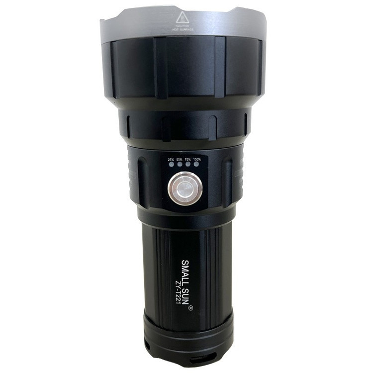 چراغ قوه اسمال سان مدل T221 با یک عدد باتری اسمال سان با ظرفیت 12800 میلی آمپر قابل روشن شدن است که این باتری نیز با کابل تایپ سی شارژ می شود.
