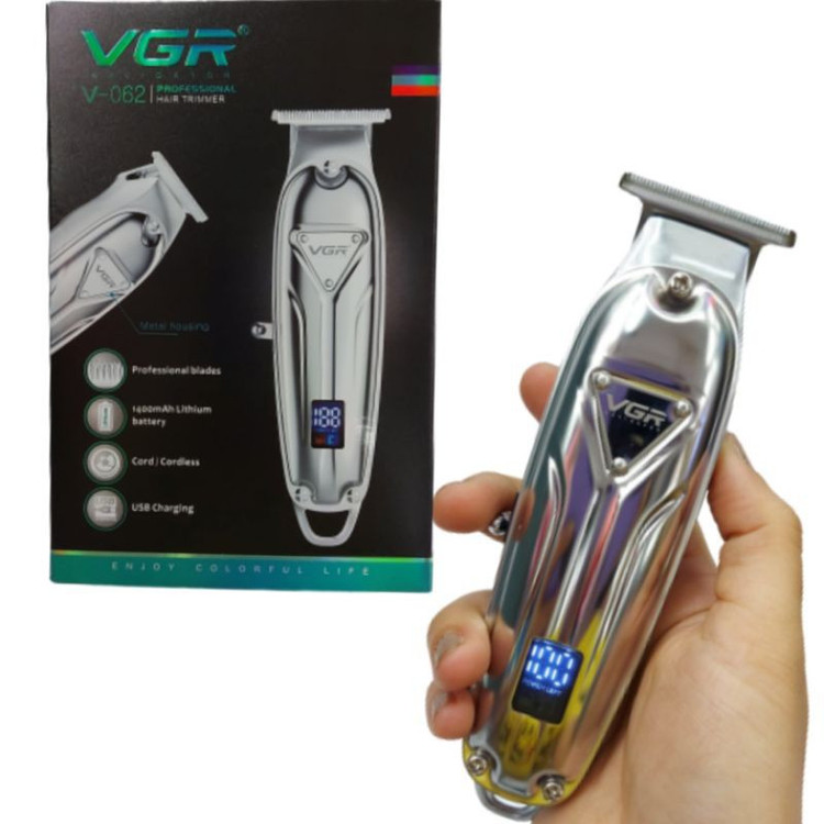 ماشین اصلاح مو صورت و سر وی جی ار مدل V-062 یک ماشین اصلاح کامل و پرقدرت می باشد که می تواند هم در منزل و هم در سالن آرایشگاه ها مورد استفاده قرار گیرد. ماشین اصلاح جمی دارای 4 شانه با اندازه های مختلف می باشد تا بتواند اصلاحی کامل و بی نقص را بر طبق خواسته شما انجام دهد. همچنین در کنار این ماشین اصلاح وی جی آر اهرمی جهت تنظیم تیغه نیز وجود دارد که با استفاده از آن می توان تغییرات مورد نظر را در اندازه برش اعمال نمود. V-062 را می توان هم با اتصال مستقیم به برق و هم به صورت بی سیم استفاده نمود . با تنها یک ساعت شارژ کردن V-062 ، این دستگاه به طور کامل شارژ شده و می تواند تا حدود دو ساعت شارژ دهی داشته باشد. جهت نظافت و نگهداری دستگاه نیز روغن مخصوص تیغه ها ارائه شده تا با استفاده از آن بتوان علاوه بر داشتن ماشین اصلاحی دقیق و تیغه هایی تیز ، طول عمر دستگاه را نیز افزایش داد.این دستگاه صفر زن و مخصوص اصلاح مو صورت و سر هستش و بسیار خوشدست و اصلاحی دقیق و 3 عدد سایز شانه 2 و3و4 را داراست قاب این دستگاه تمام استیل است این دستگاه سریع شارژ و با 5 دقیقه شارژ 1 بار اصلاح را میتوانید انجام دهید یکی از مزیت های این دستگاه این است که در صورت نداشتن شارژ با سیم نیز میتوان استفاده کرد و دارای نمایشگر دیجیتال میباشد .