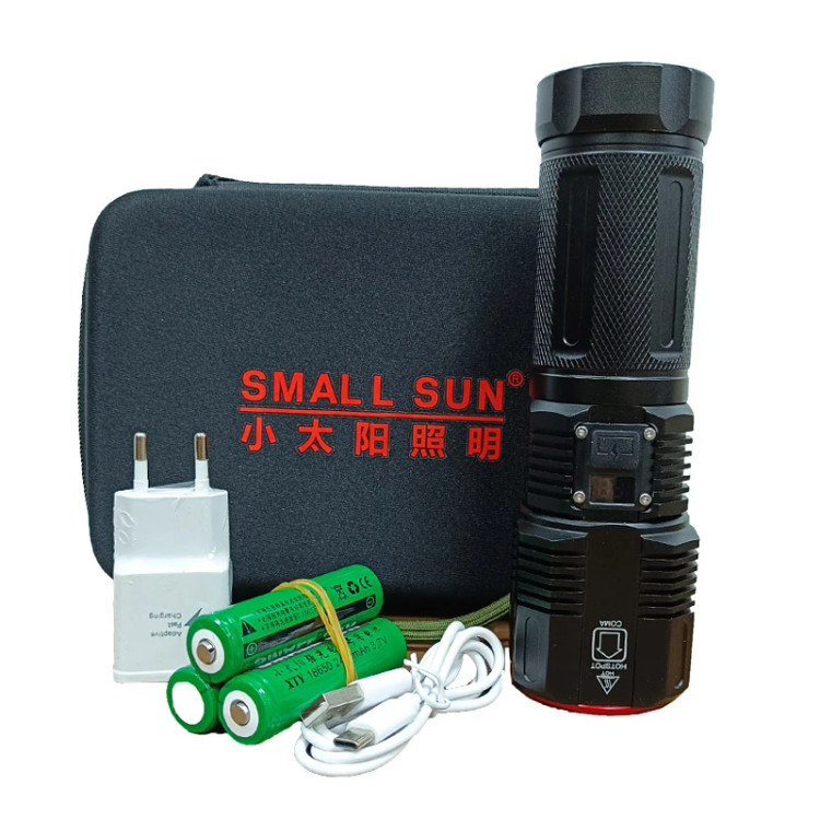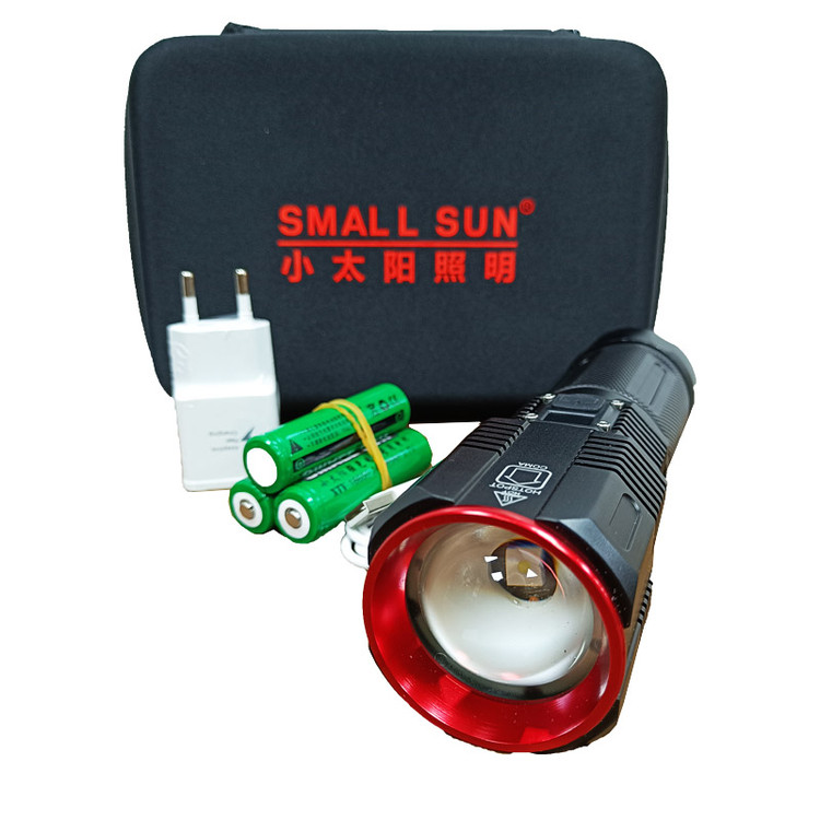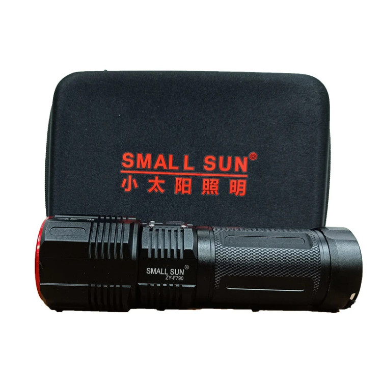 چراغ قوه F790 اسمال سان مدل ZY-F790 یکی از محصولات پرقدرت و حرفه ای این شرکت است. محصولات کمپانی بزرگ small sun از تکنولوژی و کیفیت فوق العاده بالایی برخوردار هستند. میزان روشنایی و برد بالا همیشه گزینه اول هر کاربر بوده است. که چراغ قوه پلیسی F790 میتواند به راحتی نیاز شما را در طبیعت گردی،کوهنوردی،نگهبانی، شکار و… تامین کند. این محصول از یک لامپ XP60 پر قدرت با برد موثر و مفید 700 متر و میزان روشنایی 2500 لومن محیط تاریک را به روز مبدل میکند. قابلیت زوم دار بودن چراغ ZY-F790 امکان وضوح بیشتر در یک نقطه را برای شما فراهم می نمایید. طراحی بدنه سبک و ارگونومیک با آلیاژ آلومینیوم مقاوم در برابر ضربه و واتر پروف (ضدآب) و رطوبت از ویژگی های خاص این محصول میباشد. چراغ قوه پلیسی Small sun با 3 باتری 2400 میلی آمپر که می تواند تا 4 ساعت نور دهی پرنور و زیاد مورد نیاز شما را تامین کند. روی این محصول یک دکمه پاور در قیمت جلو و یک پورت USB بعنوان پاوربانک و یک شارژر USB تایپ سی در پشت چراغ قوه تعبیه شده است. حالت نوردهی در این چراغ قوه در سه حالت نور زیاد، نور کم و حالت چشمک زن را برای کاربر فراهم می کند.