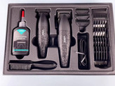 3 عدد شانه با سایز 1 ، 2 و 3 میلیمتر برای ماشین اصلاح موی صورت/6 عدد شانه با سایز 1.5 ، 3، 4.5 ، 6 ، 9 و 12 میلیمتر برای ماشین اصلاح موی سر/کابل شارژ/ روغن روان کننده /برس تمیزکننده/ درپوش محافظ