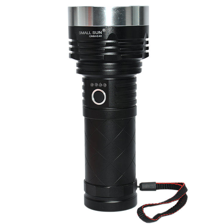 چراغ قوه اسمال سان مدل ONM-E40 دارای جنس بدنه آلیاژ آلومینیوم محکم، و همین امر باعث شده است تا در برابر ضربه بسیار مقاوم باشد. این چراغ قوه دارای یک لامپ قوی می باشد که دارای 5 حالت نوردهی قوی، متوسط، ضعیف، چشمک زن سریع و آرام می باشد که از حالت چشمک زن آن برای مواقع اضطراری استفاده می شود. از ویژگی مهم چراغ قوه اسمال سان مدل ONM-E40 ضدآب بودن آن است و این امکان را به شما می دهد تا با خیال راحت در مواقع بارانی یا محیط مرطوب نیز از آن استفاده کنید. چراغ قوه خوشدست اسمال سان از لحاظ برد نور و میزان روشنایی نیز در رتبه بالایی قرار دارد طوریکه برد نور آن 700 متر و میزان روشنایی 1000 لومن می باشد. چراغ قوه قوی اسمال سان دارای یک بند نگهدارنده در دست برای استفاده آسانتر می باشد. چراغ قوه اسمال سان مدل ONM-E40 بسیار زیبا و خوشدست طراحی شده و با استفاده طولانی مدت از آن احساس خستگی در دست را نخواهید داشت و می تواند بهترین انتخاب برای کوهنوردی، مسافرت و کمپینگ باشد.